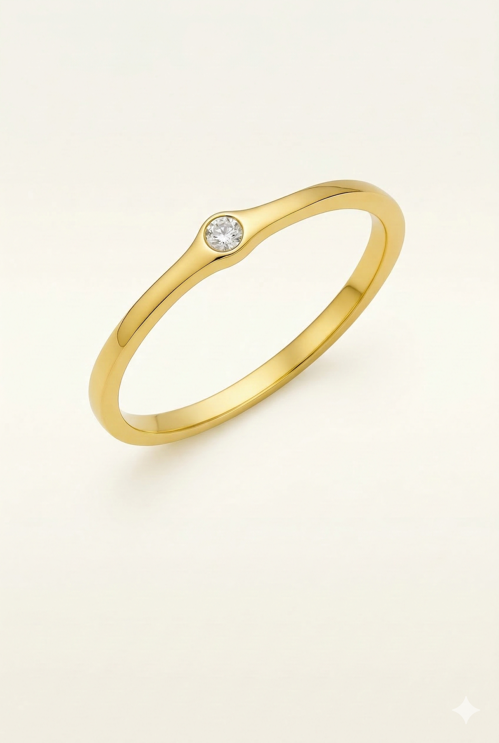 Anel Solitário de Ouro 18k/750 com peso médio de 1,1 gramas.
